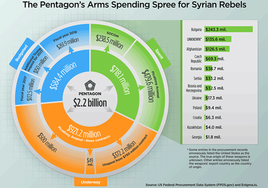 Le Pentagone s’est appuyé sur une armée de sous-traitants et sous-sous-traitants, des géants de l’armement, jusqu’à des entreprises liées au crime organisé, pour fournir jusqu’à 2,2 milliards de dollars d’armes et de munitions de style soviétique aux rebelles syriens qui combattent une guerre contre État islamique (EI).