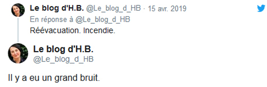 – Un exercice incendie avait eu lieu quelques jours auparavant ; André Finot, responsable de la communication de la cathédrale Notre Dame, raconte au Parisien : « Nous avons entendu l’alarme sonner à 18h30. Une alarme que l’on a tout de suite identifiée et reconnue, car nous nous étions livrés à un exercice incendie il y a encore quelques jours. »
