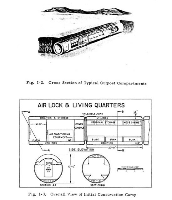 Au cours de la planification, les chercheurs ont estimé que l’avant-poste devait être conçu pour les installations d’expansion, l’approvisionnement et le fonctionnement du personnel afin de maintenir l’extension maximale de l’occupation soutenue. Le projet futuriste de 1959 devait être autonome le plus longtemps possible sans aucun appui supplémentaire de la part de la Terre.