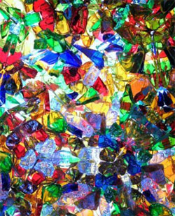 Ce contemplă el în fond? Acel carusel fascinant de culori, de nuanţe, de forme, de simetrii, de oglindiri care rezultă în urma acestei game nesfârşite de schimburi clare şi evidente, ce se declanşează mereu şi mereu prin intermediul luminii foarte puternice care nu variază deloc şi care este preluată în interiorul caleidoscopului.