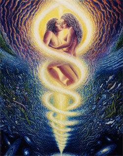 Atunci când iubeşte, în universul lăuntric al omului se declanşează instantaneu un schimb ocult. Înainte să direcţioneze energia iubirii către persoana iubită, el  o receptează în microcosmosul său, printr-un proces de rezonanţă ocultă, dintr-o sursă focar nesfârşită, gigantică ce există în Macrocosmos. Astfel apare un schimb.