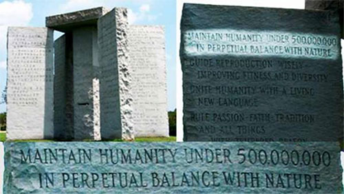 După cum vedeți, ghidul face apel la o reducere drastică a populaţiei lumii, adoptarea unei limbi mondiale și crearea unui tribunal mondial şi face aluzie la eugenie. Cu alte cuvinte, un model pentru o Nouă Ordine Mondială.