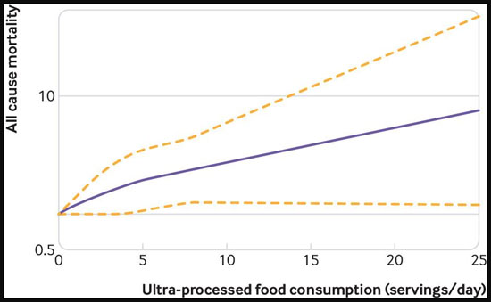 L’étude la plus récente sur les aliments ultra-transformés, publiée dans le BMJ le 29 mai, sera un choc pour la plupart des gens. Il a étudié plus de 12.000 femmes et 7.700 hommes âgés de 20 à 91 ans en Espagne de 1999 à 2014 et a évalué la quantité d’aliments transformés qu’ils consommaient. Pour chaque portion d’aliment ultra transformé consommée par un participant, son risque de décès dans les deux décennies suivantes a augmenté de 18 %. Cela signifie que seulement quatre portions par jour font monter en flèche le risque de décès d’une personne de 62 %