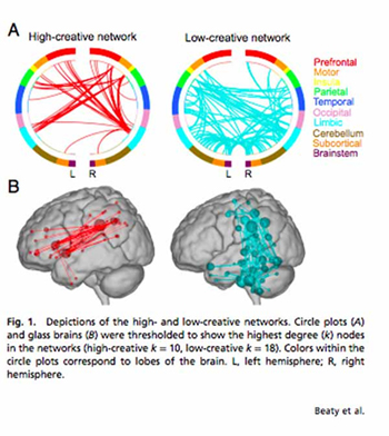 Ce que les gens créatifs peuvent faire mieux que les autres, c’est la capacité d’appréhender simultanément les idées provenant de chaque système. « Une caractéristique intéressante de ces trois réseaux est qu’ils ne sont généralement pas activés en même temps », a écrit Beaty. « Par exemple, lorsque le réseau exécutif est activé, le réseau par défaut est généralement désactivé. Nos résultats suggèrent que les gens créatifs sont mieux à même de réactiver les réseaux neuronaux qui fonctionnent habituellement séparément. »