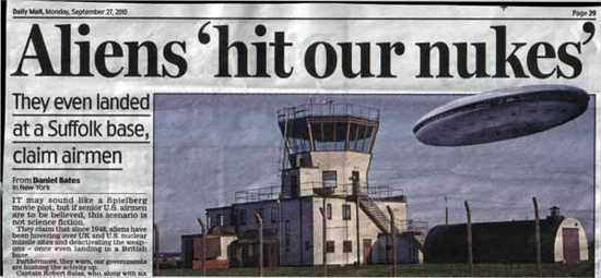 Une théorie a émergé en 2017 selon laquelle des armes nucléaires qui étaient stockées à la base de la RAF de Bentwaters lors de l’incident de Rendlesham en décembre 1980 à Suffolk, au Royaume-Uni, intéressaient des visiteurs venus d’ailleurs.