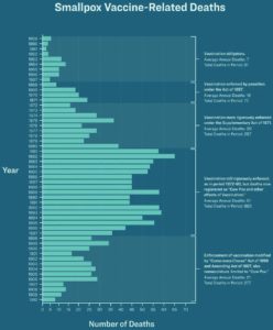 Înregistrările oficiale din Anglia din 1859 până în 1921, documentate de J.T. Biggs în cartea sa din 1912 Leicester: Sanitation versus Vaccination (Leicester: Sanitație versus vaccinare) dezvăluie tendința deconcertantă a complicațiilor legate de vaccinare, care au dus la aproximativ 1.530 de decese atribuite direct vaccinului împotriva variolei.