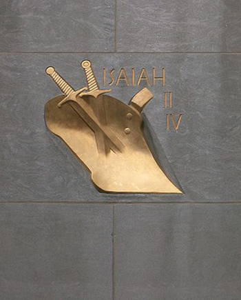 Imaginea săbiilor transformate în fier de plug este, de asemenea, prezentată în mod vizibil pe una dintre picturile murale ale Noii Ordini Mondiale din Aeroportul Internaţional Denver.
