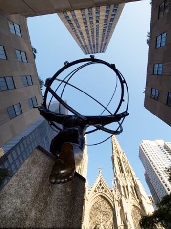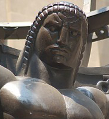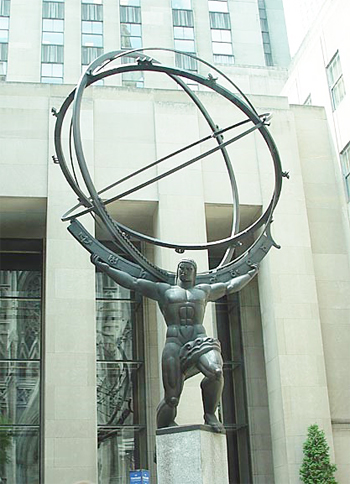 În același mod în care Atlas l-a sfidat pe Zeus în mitologie, sculptura sfidează creștinismul și chiar democrația în oraşul New York.