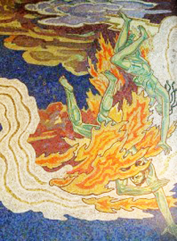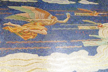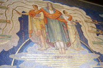 Desen mural reprezentând gândirea ca o figură cucernică care îşi trimite darul său către om şi destinul celui ignorant