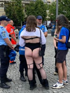 P.S. Ceea ce vedeți în fotografie nu e replica feminină a lui Florin Bădiță, în cadrul acțiunii „Fără pantaloni în metrou”……. ăăăă, pardon! am vrut să spun „La parada Pride, 17 iunie 2023”, nu, vă înșelați, dânsa are pantaloni! Ațele acelea, da, da, ațele sunt pantalonii! Uitați-vă atent, zău…….