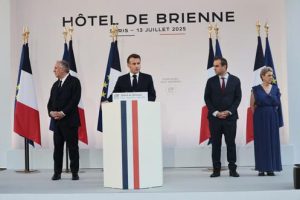 În grădinile Hôtel de Brienne, tonul este grav. Președintele Republicii, Emmanuel Macron, care ia cuvântul înaintea ceremoniilor de 14 iulie, nu se eschivează.