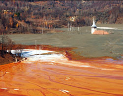 În plus, am fi rămas şi fără acest depozit imens de metale preţioase, păstrat de mii de ani în Roşia Montana. Proiectul RMGC reprezenta unul dintre cele mai mari furturi care s-ar fi făcut în România şi un imens dezastru ecologic, chiar dacă barajul care ţinea acel lac de acumulare nu s-ar fi spart (lichidul toxic s-ar fi infiltrat în pânza freatică prin fundul lacului). Avem deja în România un astfel de lac de acumulare, la nivel mai mic, rezultat de la cariera Roşia Poieni, foarte aproape de Roşia Montana. Uitaţi în poze cum arată peisajul.