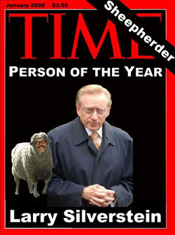 Revista Time îl prezintă pe Silverstein făcând un semn masonic, calificându-l drept „cioban“ la „stâna de oi“ a credulilor americani, cu trimitere la gigantica asigurare încasată de el cu ocazia înscenării atacului terorist asupra turnurilor gemene. La 7 ore după prăbuşirea turnurilor gemene, a căzut şi WTC 7, un imobil de 47 de etaje aflat la peste 100 de metri distanţă de turnul nordic, fără ca cineva să fie rănit, pentru că pompierii apucaseră să evacueze clădirea. Timpul de cădere a clădirii a fost de aproximativ 6 secunde. Straniu este că au fost fotografiate incendii la etajele inferioare ale WTC 7 cu câteva ore înainte de prăbuşirea turnurilor, iar Silverstein a fost auzit atunci cerându-i şefului pompierilor, într-o convorbire telefonică, să demoleze clădirea („Pull it!“), deşi versiunea oficială susţine că focul din WTC 7 a fost provocat de incendiul de la unul dintre turnurile gemene. Acest nou „atentat terorist“ i-a adus lui Silverstein încă aproximativ 500 de milioane de dolari. Clădirea nr. 7 a complexului WTC adăpostea birouri ale CIA, Departamentului Apărării, IRS, Serviciilor Secrete şi buncărul primarului New York-ului, Rudy Giuliani, care fusese consolidat în anii precedenţi pentru a rezista oricăror incendii sau catastrofe. De asemenea, imobilul depozita între 3.000 şi 4.000 de dosare incomode ce conţineau investigaţii asupra neregulilor de pe Wall Street, care astfel au fost distruse.