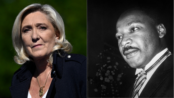 „Lupta noastră (….…) va fi (…….) o luptă paşnică, o luptă democratică. Vom lua exemplu de la Martin Luther King, care a apărat drepturile civile”, pentru că „drepturile civile ale francezilor sunt cele puse astăzi în discuţie în Franţa”, a declarat deputata prin videoconferinţă pentru membri partidului italian antiimigraţie Liga al lui Matteo Salvini, reuniţi în congres la Florenţa pe 5 aprilie.
