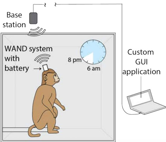 Plasat pe capul maimuţei, dispozitivul Wand, de mărimea unei palme, este conectat direct la creierul acesteia. De acolo, el este capabil să înregistreze, să stimuleze şi să modifice comportamentul maimuței în timp real.