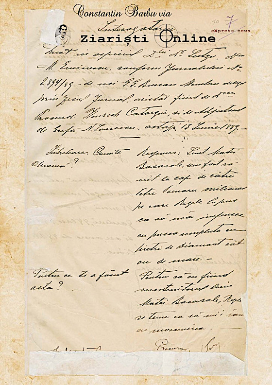 Interogatoriu Mihai Eminescu ‒ Document Constantin Barbu via Ziarişti Online