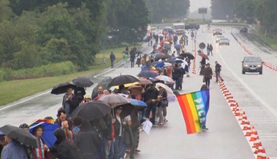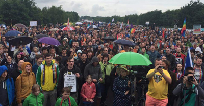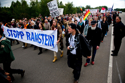 Organizatorii estimează că aproximativ 5.000 de persoane au participat sâmbătă, 11 iunie 2016, pe ploaie, la această acţiune de protest la baza aeriană de la Rammstein. Activiştii denunţă faptul că baza este folosită pentru a transmite date în vederea unor atacuri sângeroase cu avioane fără pilot. Ei cer ca baza, un important centru militar american, în care se află între altele comandamentul scutului anti-rachetă, să fie închisă.