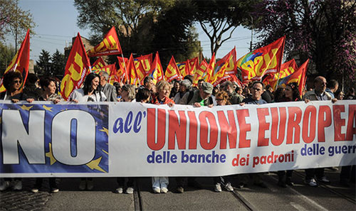 Mii de manifestanţi anti-UE şi-au exprimat furia faţă de Bruxelles în cadrul uneia dintre cele mai mari demonstraţii organizate vreodată împotriva blocului european, care a avut loc în 11 noiembrie în Italia. Amploarea protestului a şocat ofiţerii de poliţie şi chiar a determinat ambasada SUA din Roma să emită o alertă de securitate, avertizând că „aproximativ 10.000 de persoane se află pe străzi”.