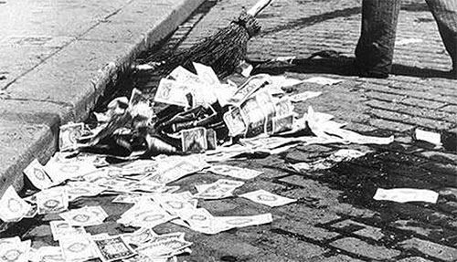 A existat un moment în care germanii de condiție umilă au purtat miliarde de mărci în buzunare, dar nu puteau cumpăra mai nimic cu acestea. O pâine costa 200 de milioane de mărci. Pensia pe o săptămână nu le permitea să-și cumpere nici măcar o ceașcă de cafea. Banii se devalorizau de la un minut la altul și nimeni nu reușea să oprească acest fenomen. Se petrecea în anul 1923, după Primul Război Mondial, într-o Germanie extrem de șifonată din cauza conflictului global în care antrenase întreaga lume. Totul a pornit după ce aliații au pretins despăgubiri exorbitante din partea unei economii germane deja schilodite.