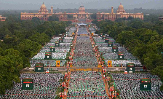 Narendra Modi a condus cel mai mare grup de oameni care au practicat yoga simultan, în capitala New Delhi. Premierul indian a fost acompaniat într-o şedinţă yoga de peste 35.000 de persoane.