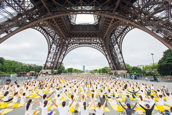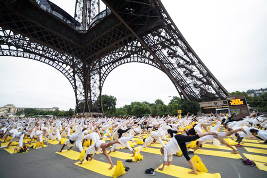 O mulţime impresionantă de simpatizanţi yoga s-a strâns şi sub turnul Eiffel din Paris, în Franţa.
