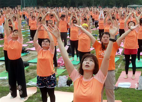 Şi la Taipei, în Taiwan, peste două mii de oameni au realizat împreună 108 execuţii ale tehnicii yoghine Salutul Soarelui.