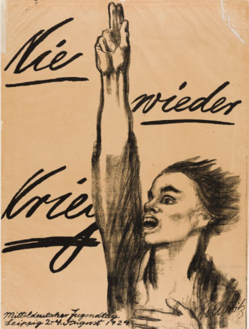 Una dintre cele mai iconice expresii artistice ale sentimentului anti-război din Germania este un poster din 1924 al pictoriței și graficienei expresioniste Käthe Kollwitz.