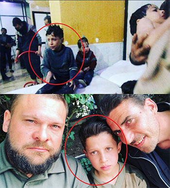 – Vă voi arăta imagini dintr-o altă parte de lume. [Scoate dintr-un dosar o foaie de hârtie cu fotografii de la presupusul atac chimic de la Douma, inclusiv un băiat de 11 ani, identificat ca Hassad Diab, care a spus la TV (canalul Rusia-1, joi 19 aprilie – n.r.) că înregistrarea video difuzată de Căștile Albe (grup de voluntari care operează în zonele controlate de rebeli din Siria și în Turcia – n.r.) a fost regizată].