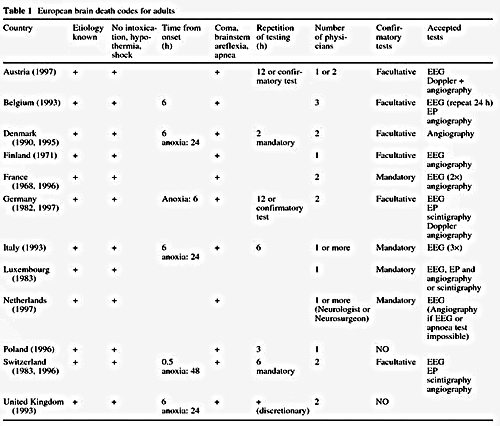Din literatura găsită de mine, reiese că în 1990 Danemarca era singura ţară din Europa al cărei Consiliu de Etică nu a acceptat moartea cerebrală ca şi criteriu al morţii. Nu am găsit date mai noi.