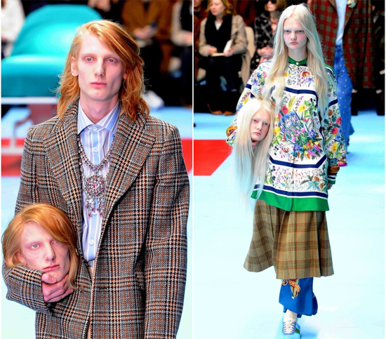 În sezonul trecut, Săptămâna modei de la Milano s-a deschis cu o prezentare Gucci, parcă desprinsă dintr-un film de groază. Modelele au păşit pe o scenă care aducea cu o sală de operaţii, iar unele au avut drept accesoriu o copie din cauciuc, foarte realistă, a propriului cap.