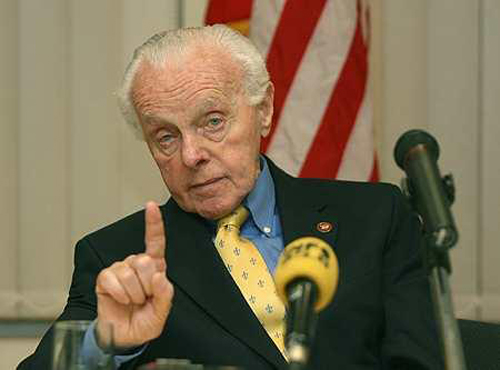Cu totul altă poziţie adoptă congresmanul Tom Lantos (cum am arătat, evreu ungur, membru B’nai B’rith), care a manifestat în ultimii ani un interes obsedant pentru România, inclusiv în promovarea unor proiecte economice dezavantajoase României, susţinute şi de Moses. Aşa se face că, în favoarea acestor proiecte, el se implica personal pe lângă puterea politică instalată după alegerile din decembrie 1996, şantajând cu condiţionări de contracte intrarea României în blocul militar al NATO, sau cu aranjarea vizitei preşedintelui Emil Constantinescu în S.U.A. Nu românii au fost cei care şi-au închipuit că afacerea Bell Helicopters era un paşaport pentru NATO, acest fapt le-a fost sugerat de către politicienii veroşi americani.