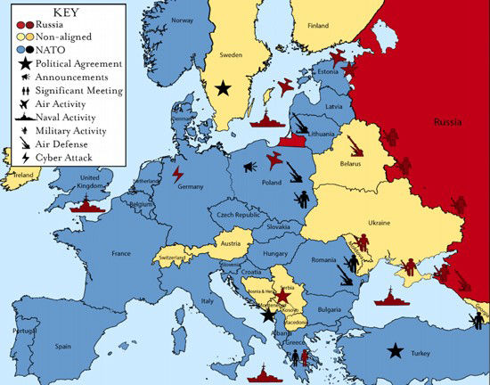 The following map, from the Institute for the Study for War (ISW) shows how this tension across Europe is playing out.