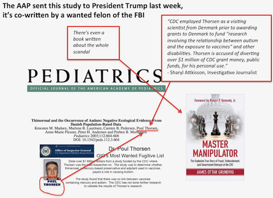 Here’s the Vaccine Safety Commission’s slides addressing these three studies. (Note that Dr. Thompson – CDC Whistleblower – and Poul Thorsen – wanted felon – are actually co-authors to many of the studies the AAP sent President Trump).