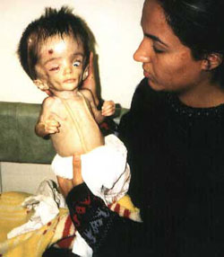 Imagini de coşmar ale unor bebeluşi din Irak şi Afganistan, născuţi morţi, cu înfiorătoare malformaţii congenitale, cauzate de inumanele, satanicele bombardamente americane cu proiectile conţinând reziduuri de uraniu.