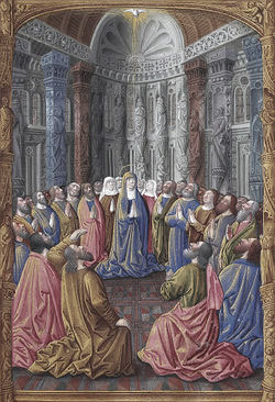 În Evanghelii se relatează că atunci când Duhul Sfânt s-a pogorât, sub forma unor limbi de foc, asupra ucenicilor, aceştia s-au transformat în mod miraculos din oameni simpli în „preaînţelepţi” care au început să predice învăţăturile lui Iisus pe înţelesul tuturor, în diferite limbi pe care nu le cunoscuseră până atunci. Chiar în acea zi, în urma predicii Sfântului Apostol Petru, în jur de trei mii de oameni au început să creadă în Iisus Hristos, alcătuind prima comunitate creştină.