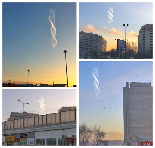 The photos above featuring an unusual phenomenon have taken the internet by storm. The clouds, or what appears to be clouds, have an extremely rare form resembling DNA structure. Is this a sign of alien life? Can this phenomenon affect human evolution?