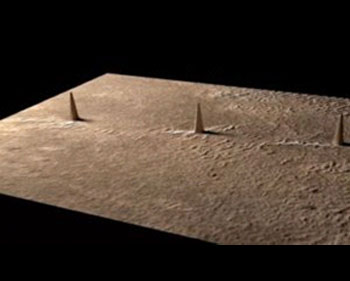 Images captured by the Mars Global Surveyor (MGS) spacecraft reveal what looks like three huge towers on Mars equally spaced out from one another and symmetrically aligned.