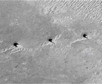 The Daily Sheeple reports: “Here’s yet another curious find on the surface of the red planet. It looks like three towers spaced equidistant from one another in the same pattern as the pyramids at Giza or the belt in the constellation Orion.”