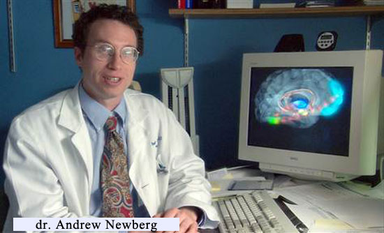 Newberg este un pionier în domeniul neuroteologiei – studiul neurologic al experienţelor spirituale. El și-a început munca în acest domeniu în anii ʼ90, scanând ce se petrece în creierul oamenilor atunci când meditează profund, practică spirituală ce este relativ uşor de monitorizat prin investigare imagistică a creierului. De atunci, el a analizat aproximativ 150 de scanări cerebrale, inclusiv obţinute de la budişti, călugări și maici din diverse congregații religioase, atei, penticostali cu darul limbilor (glosolalie), mediumuri braziliene practicând psihografia (scrierea prin dicteu automat a mesajelor primite de la fiinţe defuncte).