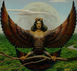 – În mitologia greacă și romană, Harpia este o ființă cu trupul unei păsări și capul unei femei. Adesea descrise ca fiind feroce și prădătoare, harpiile simbolizează haosul, violența și forțele distrugătoare ale naturii.