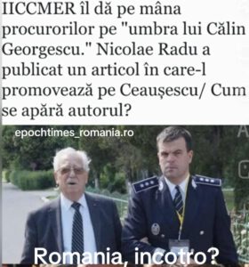 Atacul la imaginea personală este evident: „IICCMER îl dă pe mâna procurorilor pe «umbra lui Călin Georgescu» ‒ Nicolae Radu”, Epochtimes-România.ro etc.