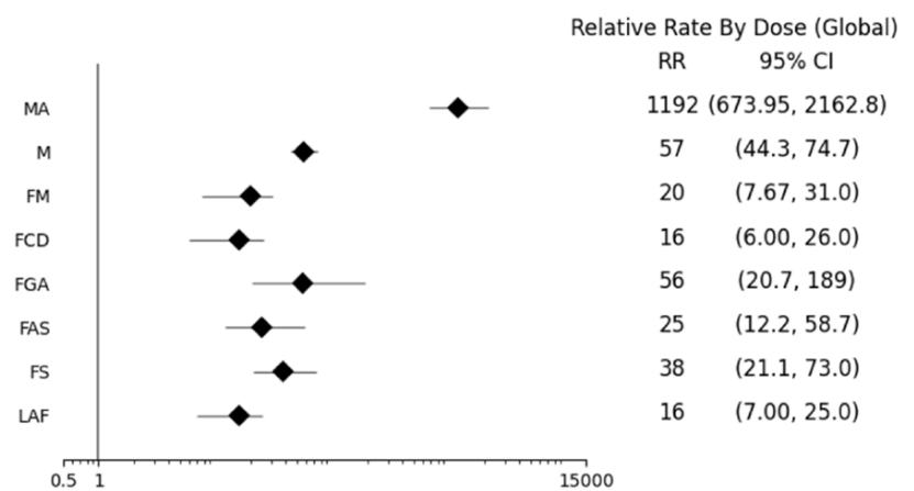 Raportul EA legate de vaccinurile anti-covid-19 în comparație cu cele ale vaccinurilor gripale a fost cel puțin dublu (și semnificativ statistic la p<0,05) pentru următoarele afecțiuni: