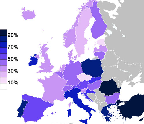Cele mai credincioase țări din Europa sunt România și Turcia. Le urmează Polonia și Portugalia. Spune și asta ceva despre noi, nu?