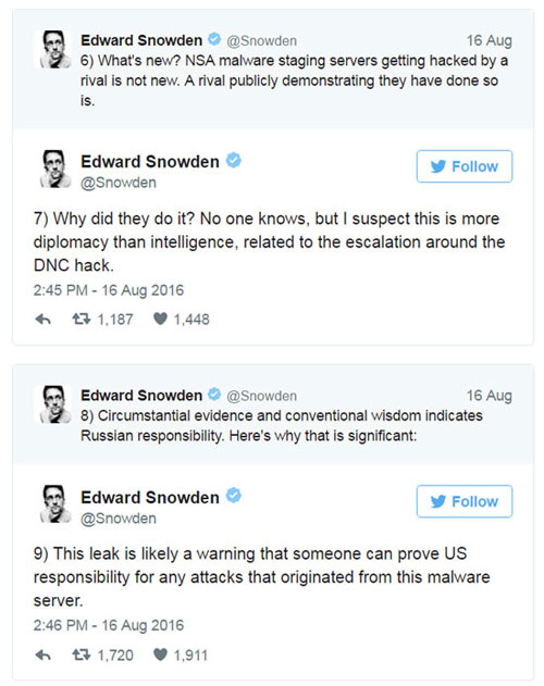 On the other hand, in August 2016 whistleblower Edward Snowden released a document revealing an arsenal of cyber weapons used by the NSA. On August 15, 2016, the hacker group Shadow Brokers announced they are holding an auction of cyber weapons created by the agency. The shadowy group “dropped 300MB of stolen data onto the open Web, including live exploits for some of the Web’s most crucial network infrastructure, apparently stolen from the NSA in 2013” according to The Verge.