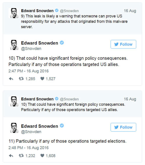 On the other hand, in August 2016 whistleblower Edward Snowden released a document revealing an arsenal of cyber weapons used by the NSA. On August 15, 2016, the hacker group Shadow Brokers announced they are holding an auction of cyber weapons created by the agency. The shadowy group “dropped 300MB of stolen data onto the open Web, including live exploits for some of the Web’s most crucial network infrastructure, apparently stolen from the NSA in 2013” according to The Verge.