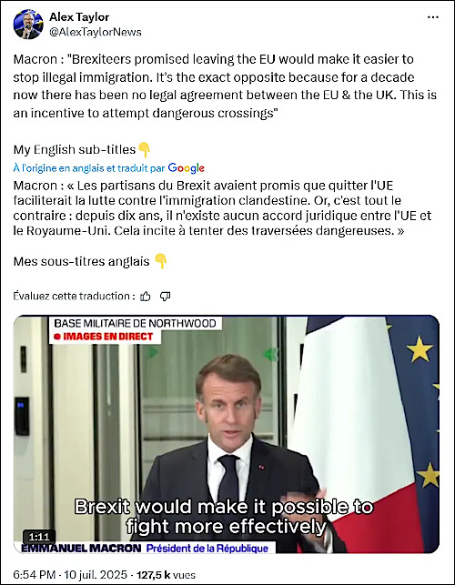 Emmanuel Macron pretinde că Brexit-ul este cauza incapacității Regatului Unit de a stopa imigrația. Din nou, fals. Controlul la frontiere ține de Schengen, nu de UE. Regatul Unit nu a făcut niciodată parte din Schengen, deci Brexit-ul nu are niciun impact asupra imigrației. În realitate, sursa problemei este spațiul Schengen. Dacă migranții nu ar putea circula liber în acest spațiu, nu ar ajunge la Calais.