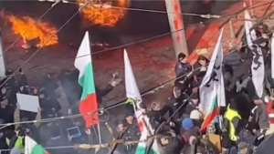 „Nu vrem euro”! Momentul în care protestatarii bulgari incendiază biroul Comisiei Europene din Sofia
