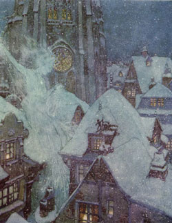 În faţa sa, stând în zăpada viscolită, se afla o fetiţă îmbrăcată într-o rochie subţire, ieftină. În jurul umerilor avea un şal zdrenţuit.