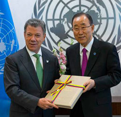 Santos, împreună cu liderul FARC Rodrigo „Timocenko” Londono Echeverri, au ajuns să încheie un acord între guvernul columbian şi cei mai rău famaţi rebeli comunişti ai Americii Latine – Forţele Armate Revoluţionare ale Columbiei – prin care propunea o amnistie totală pentru miliţiile criminale care au făcut zeci de mii de victime de-a lungul anilor.