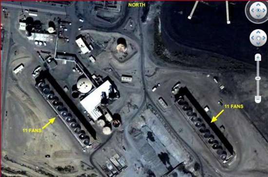 11 ventilatoare de o parte, 11 ventilatoare de cealaltă parte – pentru ce altceva ar fi necesar atât de mult aer undeva în deșert dacă nu pentru baza subterană de dedesubt?